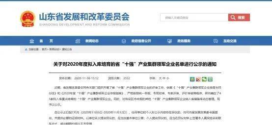 11月6日,山东省发展和改革委员会(简称“省发改委”)针对山东省“十强”产业集群领军企业评审,发布公示公告称,本次评审确定了鲁商健康产业发展股份有限公司(简称“鲁商发展”)旗下的山东福瑞达医药集团有限公司(简称“福瑞达集团”)等45家企业,纳入拟入库重点培育的“十强”产业集群领军企业名单,另有21家企业拟纳入“十强”产业集群领军企业纳入省储备库动态管理。