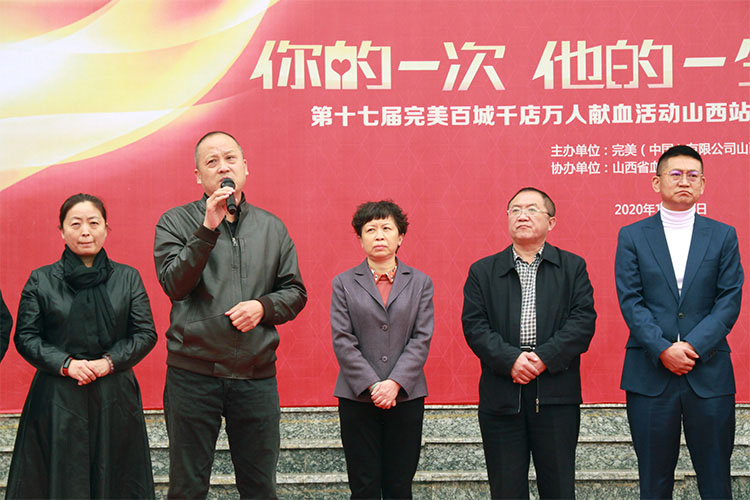 活动开始前,完美伙伴为大家带来了打动人心的开场舞蹈《感恩的心》。活动伊始,山西分公司总经理薄一宏先生致辞,他对一直坚持参与无偿献血的完美伙伴们表达了诚挚的敬意。完美公司从1999年至今连年开展无偿献血活动,2004年开始每年举办“完美百城千店万人献血活动”。在公司领导的带领下,完美员工、合作伙伴及其家属等积极参与,截至目前,累计献血总人数逾28万人次,献血总量逾7,100万毫升,已有6名完美人成功捐献造血干细胞。