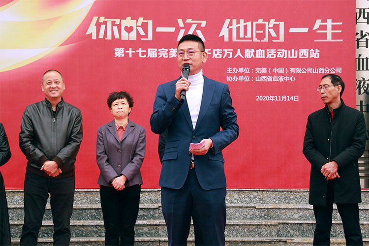山西省血液中心白林主任在随后的讲话中对完美公司十多年来坚持无偿献血,为推动山西省无偿献血事业所作出的贡献表达了高度赞扬,并肯定了山西分公司对无偿献血事业所作出的贡献。