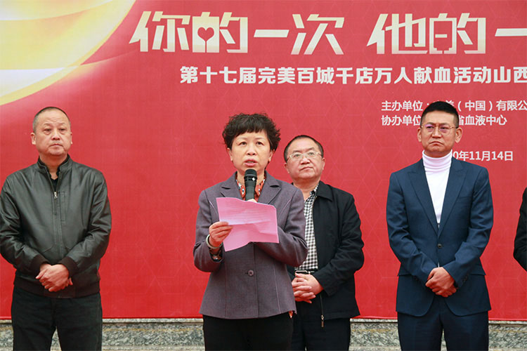 紧接着,山西省红十字会造血干细胞捐献者资料库管理中心主任左彤女士,在讲话中高度评价了完美山西分公司坚持献血活动的重大意义,对完美伙伴积极投身公益事业的善举给予了高度赞扬。