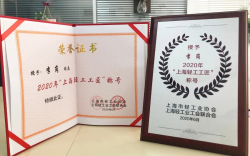 ▲李岗荣获“2020上海轻工工匠”荣誉证书