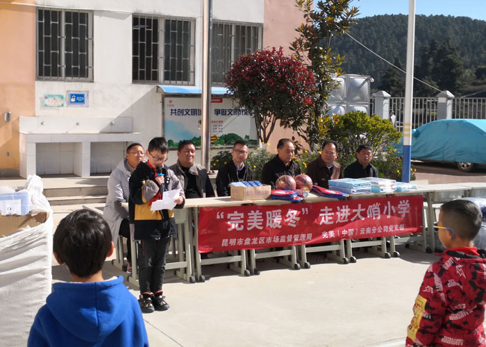 为切实把“不忘初心、牢记使命”主题教育落实到行动上,12月11日,云南分公司党支部联合昆明市盘龙区市场监督管理局来到盘龙区清源镇大哨小学,给全校学生送来爱心物资及文体用品,也带去了暖冬的祝福和问候。