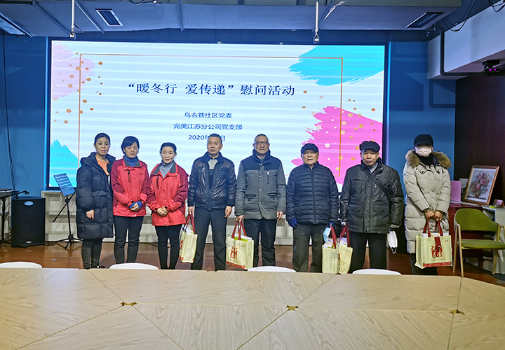 热情抵御严寒,爱心融化冰雪。春节即将来临之际,为践行“不忘初心,牢记使命”主题教育活动,秉承公司“取之社会,用之社会”的公益理念,进一步增强非公党建组织的凝聚力和向心力,切实把党的关怀落到实处,12月18日,完美江苏分公司党支部联合秦淮区夫子庙街道党工委、乌衣巷社区党委,对夫子庙街道辖区老红军、建国前军人及困难家庭党员等6户困难党员家庭进行走访慰问。