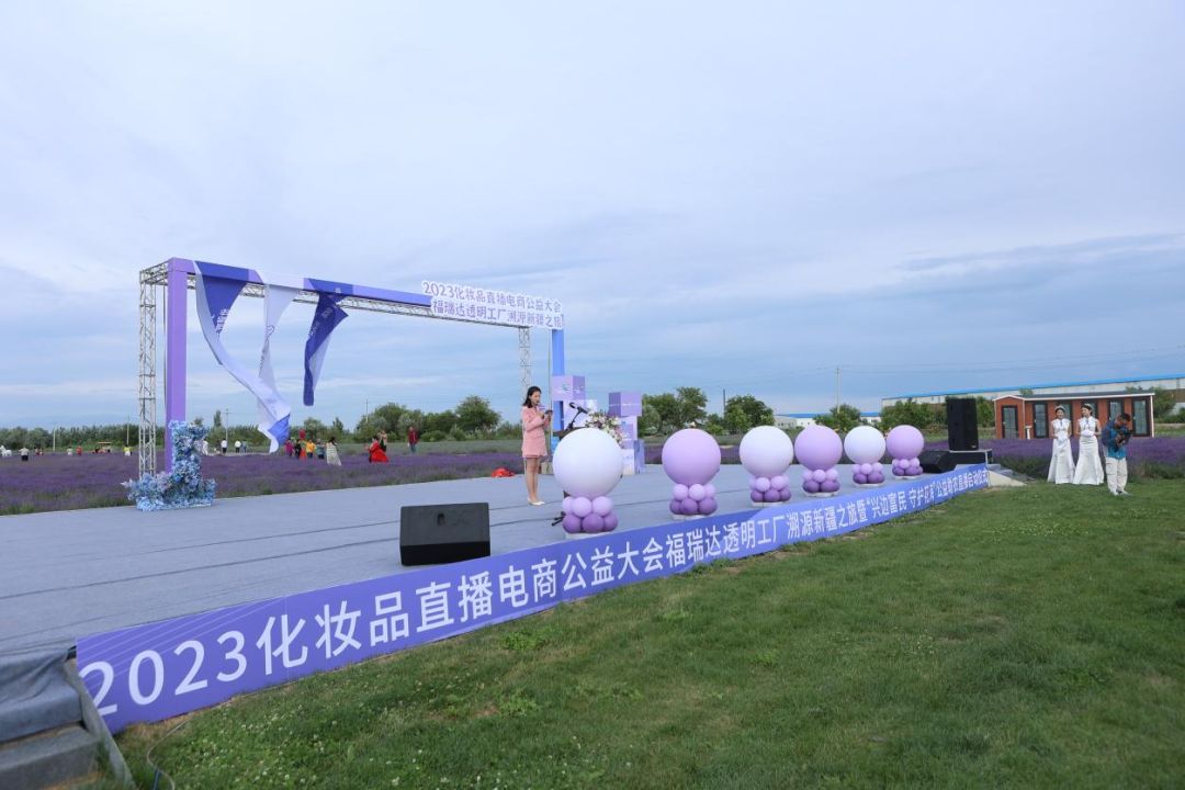 兴边富民,守护花海,公益直播,凝聚爱心。6月29日,2023中国化妆品直播电商公益大会在美丽的“中国薰衣草之乡”新疆可克达拉市成功举办,福瑞达透明工厂溯源新疆之旅暨“兴边富民 守护花海”公益助农直播活动同步启动。