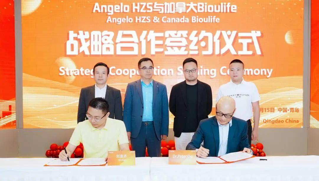 2024年5月15日,Angelo HZS与加拿大Bioulife战略合作签约仪式在青岛海之圣总部产业园隆重举行。海之圣领航人、Angelo HZS董事长刘家齐博士与加拿大Bioulife董事长Dr.Peter Ou代表双方签订战略合作协议。海之圣董事、Angelo HZS总裁秦小雄先生,Angelo HZS副总裁、欧亚区总经理李芃泽先生,海之圣董事办主任、Angelo HZS营销副总裁刘杰先生等共同见证签约仪式。