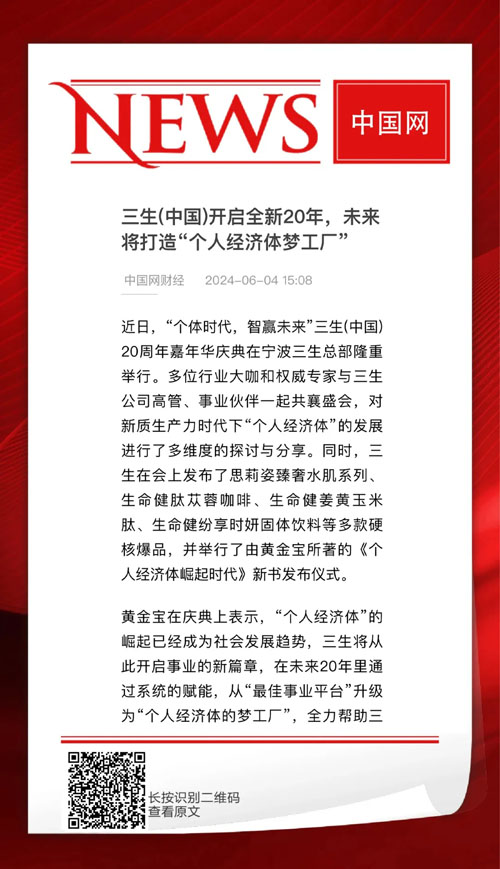 中国网、中新网、每日财经网、中国经济网、中华网、第一财经、北京商报、中国质量新闻网……数十家国内主流媒体和门户网站纷纷关注三生打造“个人经济体梦工厂”,并进行了头条报道,引起行业和各界广泛关注。
