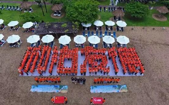 将不可能成为现实!凌晨5点钟,400余菁英整装齐发,训练有素,将“和治友德”的巨型Logo呈现在美丽的沙滩上,巴厘岛见证了我们的奇迹!