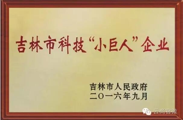 云尚被授予《吉林市科技“小巨人”企业》荣誉