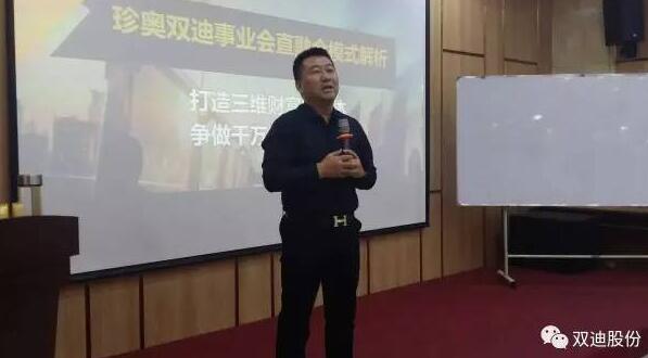 副总裁鲁飞从双迪的成立与发展、珍奥与双迪的关系、双迪的企业文化、历年来获得的荣誉以及双迪未来的发展规划等方面,详细地进行了介绍,让在场所有人对双迪有了系统、全面的了解。鲁总表示,希望各界精英加入到珍奥双迪这个平台中,共同创造属于自己的财富。