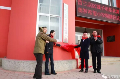 12月22日上午,大连市希望工程迎来年终大礼,元旦到来之际,大连团市委希望办、市青基会联合普兰店区、瓦房店市政府有关部门,分别在普兰店区城子坦街道、瓦房店市赵屯乡隆重举行两所美罗希望小学揭牌仪式。大连团市委副书记孙晓峰先生、普兰店区副区长袁洁女士,瓦房店市副市长于凤媛市女士,美罗国际生物科技集团股份有限公副总裁、美罗国际慈善基金会理事长张钟齐先生,以及普兰店区、瓦房店市有关领导和两所学校千余名师生参加了仪式。