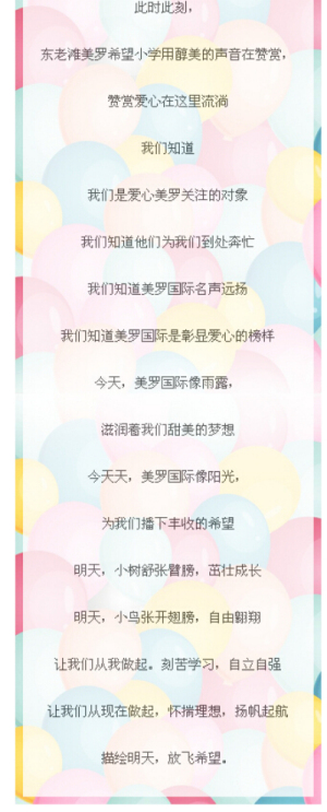 虽然寒风凛冽,但是仪式现场的来宾,尤其是孩子们充满了喜悦和激动,美罗国际的爱心之举,为严冬带来了温暖。老滩美罗希望小学的宋承玉校长现场做的一首诗,真切表达了师生们的心情。
