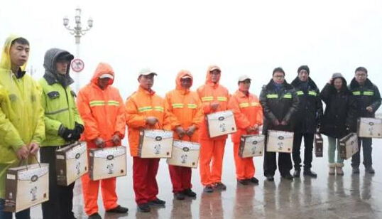 12月21日清晨,青岛市南区城市管理局联合中国商报、新华网、人民网等驻青26家媒体30多名记者共同体验环卫工人的工作,并联合发起“垃圾不落地城市更美丽”公益倡议活动。长青中国作为本次活动的爱心企业,向环卫工人送去了爱心,将人参咖啡礼盒送到环卫工人手中,为他们带去了冬日的温暖。