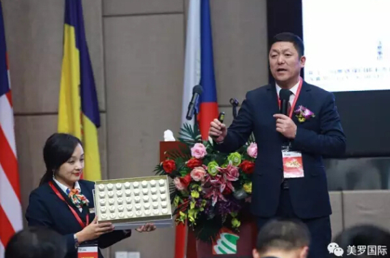 美罗国际联合创始人、董事长、总裁夏历先生首先发表重要讲话。他代表美罗国际联合创始人,副董事长于智慧女士,对参加会议的代表以及全体美罗家人过去一年的巨大付出,以及取得的成绩表示慰问和高度赞许。夏历董事长从经济与社会发展的大趋势入手,对美罗事业的发展前景进行了展望和分析。他表示,经过十多年来的科学发展、创新发展和规范发展,尤其是近年来以成就唯一为目标的转型、跨界、融合、创新,美罗国际集团形成了强大的基础实力,构建了夯实的事业平台。具备了无可比拟的品牌、文化、产品、管理、科研、创新、模式等全方位优势,规模效应、创新效应、品牌效应开始释放和显现。今年,随着一系列新的市场政策、人才战略的落地和实施,美罗国际正式进入了以稳健、快速、跨越、倍增发展为特征的转折元年!他还表示,通过对科研、生产以及市场人才培养方面的巨大投入,2017年集团将面向市场,全面规划,强化管理与服务,提供更多有竞争力的差异化产品,帮助更多家人实现健康、快乐、财富和价值人生。让更多的精英通过五大跨界,实现精彩蜕变,实现新的梦想!