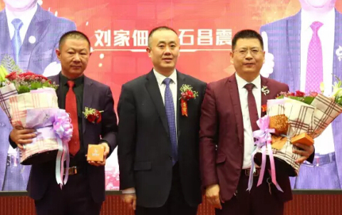 集团副董事长、高级副总裁王玉平为新晋级的两位总裁刘家佃、石昌震颁奖