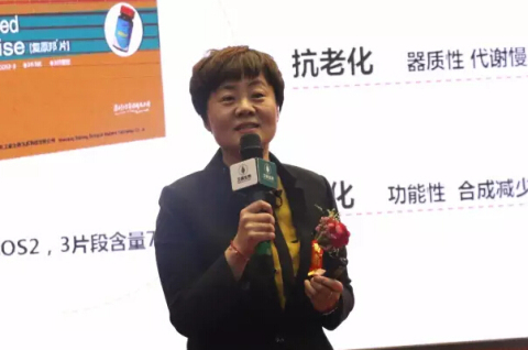 直销培训部总经理王朝华向与会家人重磅推出了新品复原邦片,她从产品功效出发,全新解读复原邦片上市后抢占市场的优势所在,为展示产品的功效,她现场作了产品试验,良好功效让全场家人大为震撼,大家表示对产品上市充满期待。