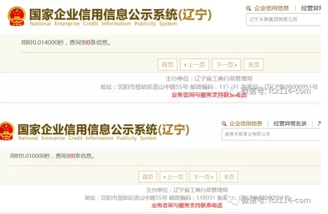 小编通过国家企业信用信息公示系统查询发现并没有辽宁长耕集团有限公司和长耕酒业有限公司存在,只有长耕米业有限公司和长耕肥业有限公司。