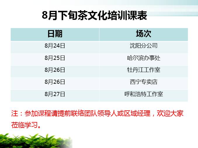 (附上8月下旬茶文化培训课程表)