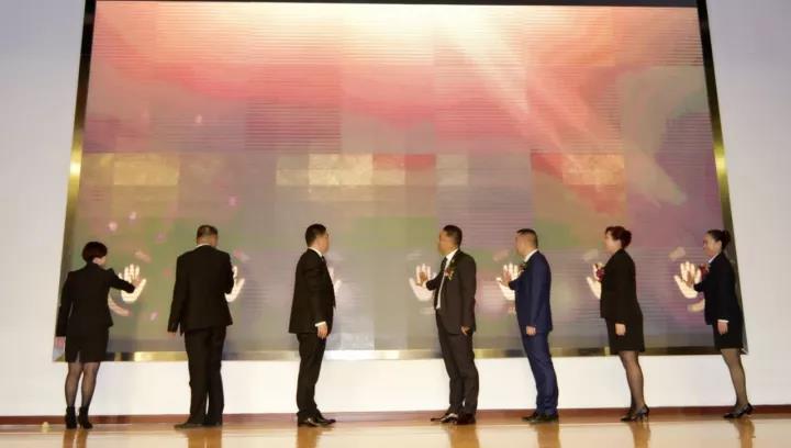在全场的欢呼中,王元圣董事长携公司核心高管及系统领导人,登台共同为该项目的开工进行奠基。