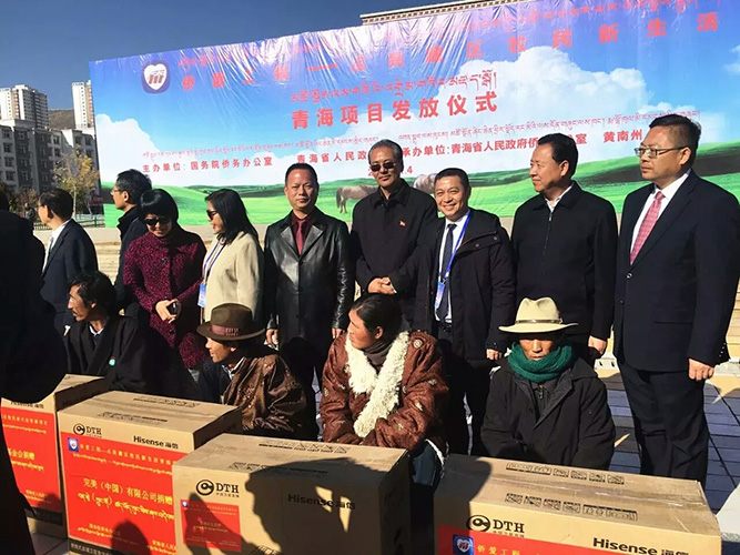 次日,“侨爱工程——点亮藏区牧民新生活”青海项目发放仪式在青海省黄南州举行。杨永顺代表公司将便携式太阳能卫星电视机发放给藏区困难群众。