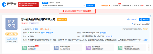 天眼查显示,苏州舒之畅公司成立于2021年5月14日,经营范围包括保健食品销售、医学研究和试验发展、第一类医疗器械销售、化妆品批发等。注册资本299万,王新建持股100%,为公司法定代表人、执行董事。