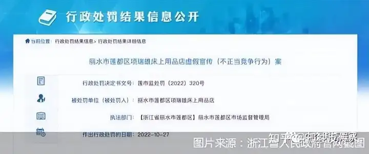 2022年12月29日,北京商报记者从天眼查App获悉,近日丽水市莲都区项瑞雄床上用品店(以下简称“床上用品店”)因虚假宣传,被莲都区市场监督管理局处以行政处罚,并处罚款45万元。床上用品店为“和也”品牌的加盟商,店内主要销售浙江和也健康科技有限公司(以下简称“和也”)的产品及东莞市显星电子科技有限公司出品的“华佗养生椅”(又称“倒睡椅”)。