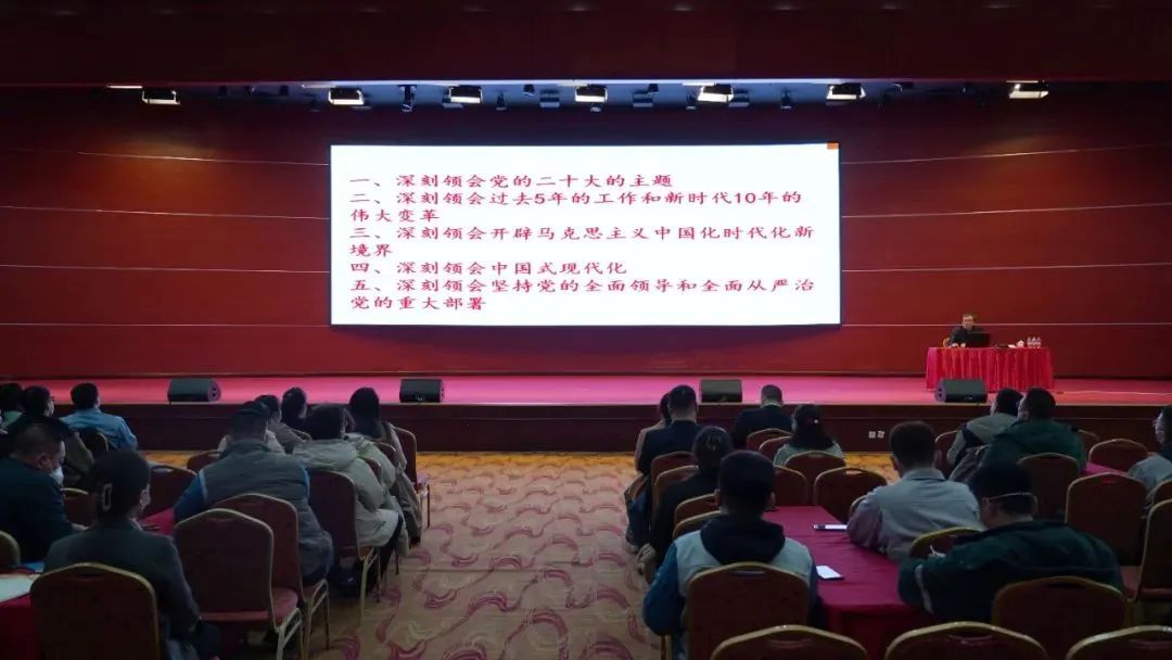此次专题党课,白明春教授从“深刻理解党的二十大的主题、深刻领会过去五年的工作和新时代十年的伟大变革、深刻领会开辟马克思主义中国化时代化新境界、深刻领会中国式现代化和深刻领会坚持党的全面领导和全面从严治党的重大部署”五方面并结合实际为大家讲解二十大会议精神。使党员同志们深刻地理解和把握总书记二十大讲话的丰富内涵、精神实质和核心要义。