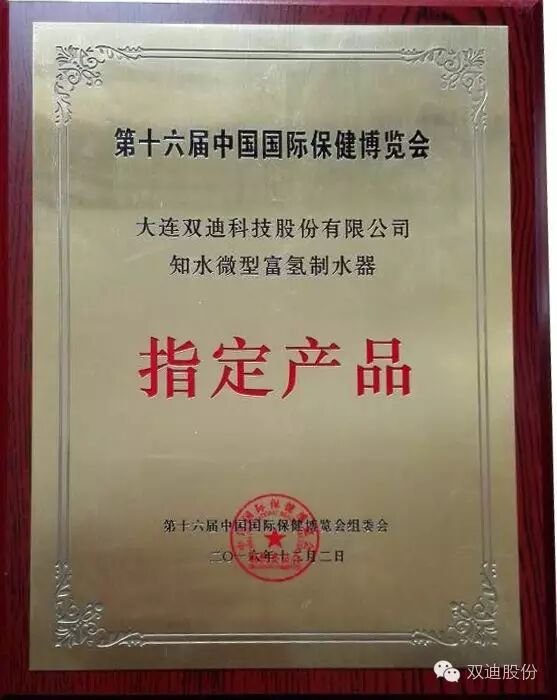 12月2日,素有“保健行业奥斯卡”之称的第十六届中国国际保健博览会暨中国(昆明)保健节在昆明滇池国际会展中心隆重召开。大连双迪科技股份有限公司以其高科技企业实力和高颜值产品囊括了七项大奖。其中大连双迪科技股份有限公司获“优秀企业” 奖;双迪股份董事长潘晓非获“优秀企业家”奖;双迪牌尚得泰口服液获“优秀产品”奖;知水微型富氢制水器、双迪牌鹰嘴纳豆、尚清全自动空气净化器、知水牌富氢果蔬消毒机获“指定产品” 奖。